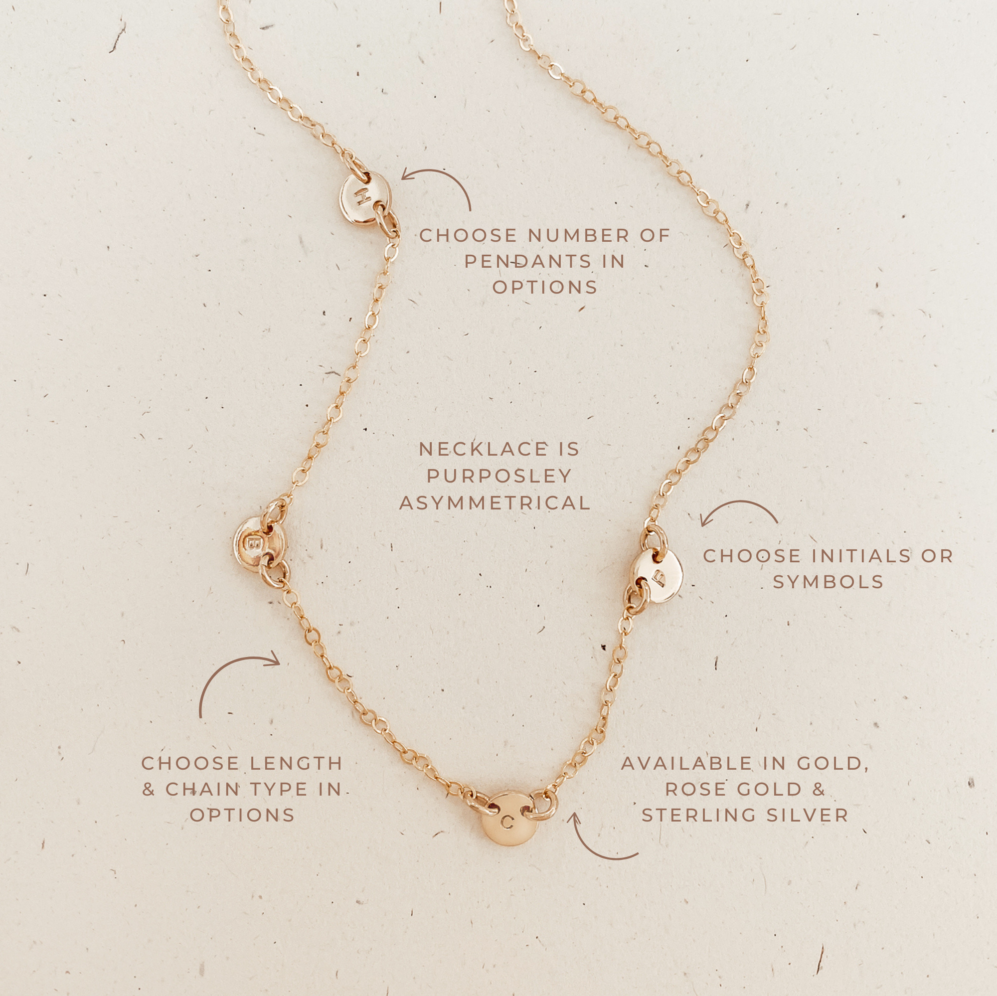 Kirby • Tiny Asymmetrical Pendant Necklace • Choose Number of Pendants